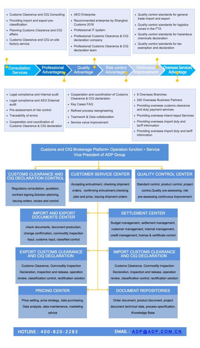 Customs and CIQ Brokerage Platform is a platform where ADP provides import and export Customs Clearance, commodity Inspection Declaration, legal compliance control and services to domestic and foreign customers.