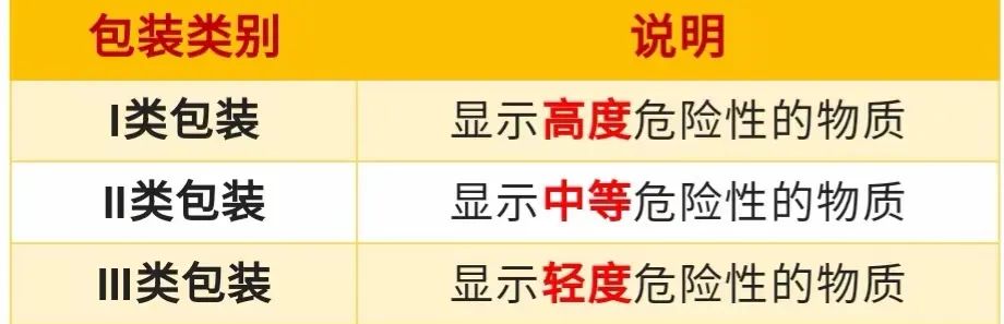 According to the degree of danger, all kinds of dangerous goods other than self reactive substances in Category 1, Category 2, Category 7, Category 5, 5.2, 6.2 and 4.1 of Category 6 and Category 4 can be divided into three packaging categories: Category I, Category II and Category III:
