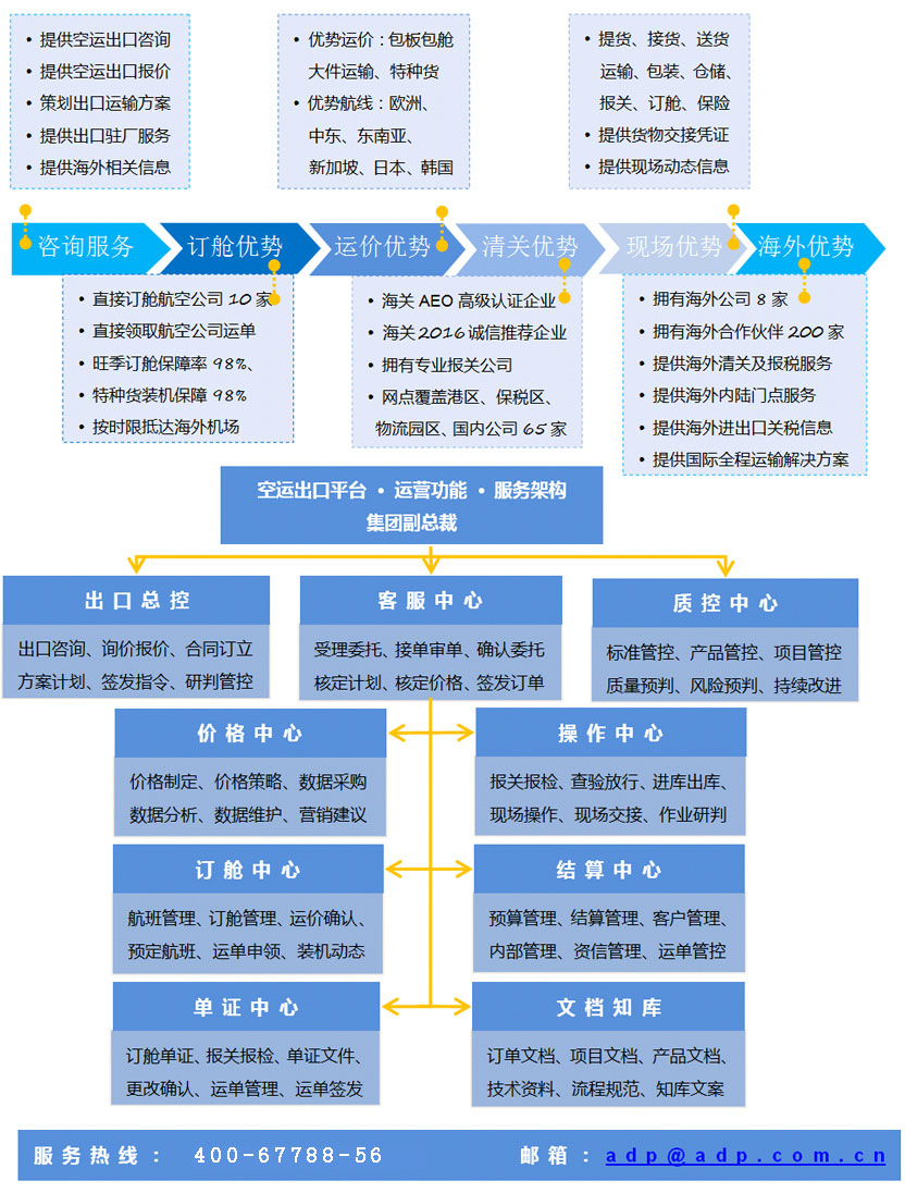 空运出口平台是上海亚东向国内外客户及集团内子分公司、海外公司、海外合作伙伴提供中国口岸至世界各地的出口订舱、运输、管理及服务保障。