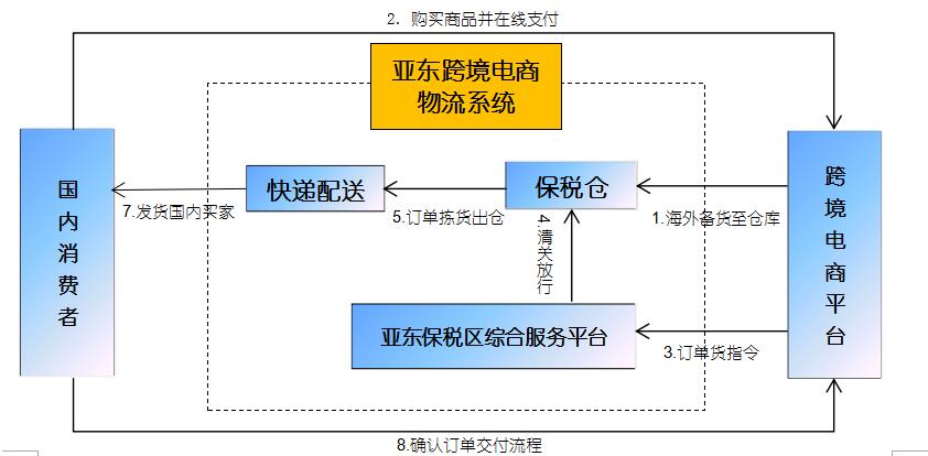 其服务范围涵盖自海外仓集货、集港、装箱、申报,通过海运或空运方式,集中将货物发运至自贸区海关指定监管保税仓库。上海亚东广州公司依据消费者跨境电商或电商平台订单,向海关提交相关电子数据并填报《跨境贸易电子商务进出境物品申报清单》。相关申报向海关递交后,按订单在亚东保税仓库进行分拣、分装、包裹、海关查验、放行、出库,配送至消费者手中。