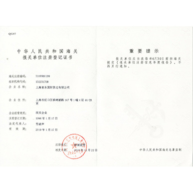 报关单位注册登记证书