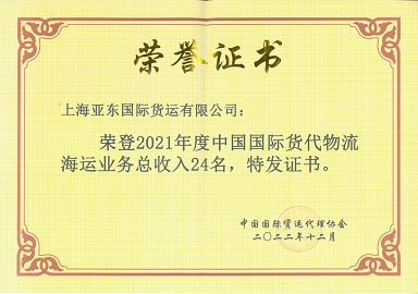 2021年度中国国际货代物流百强排名海运24名