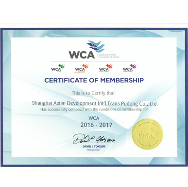 2016-2017年WCA会员证书