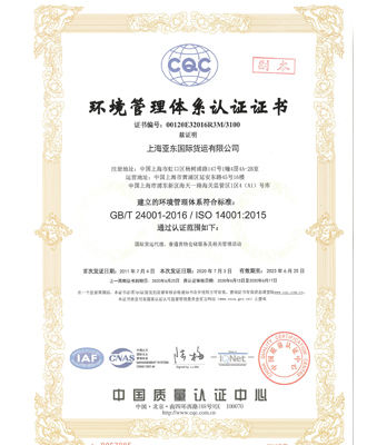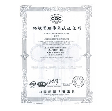 ISO14001:2004环境管理体系认证证书