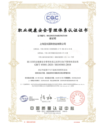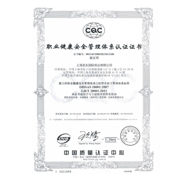 职业健康安全管理体系认证证书