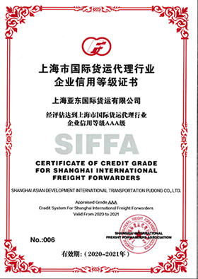 2020-2021年上海市国际货运代理行业企业信用等级证书AAA级