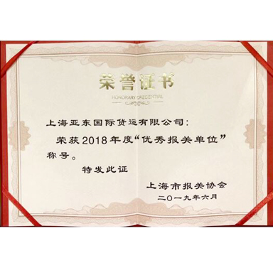 2018年度优秀报关单位