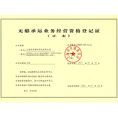 2017年无船承运业务经营资格登记证