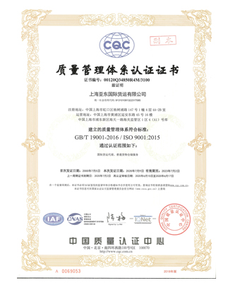 质量管理体系认证证书