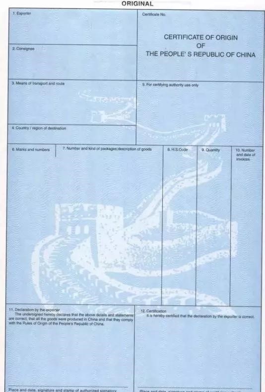 3. 原产地证书的内容: