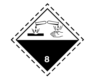 在联合国《关于危险货物运输的建议书 规章范本》(TDG)中,氢氧化钠被归为第8类腐蚀性物质,联合国编号为1813,建议包装类别为Ⅱ类。其危险货物运输象形图为: