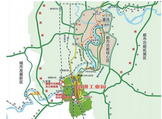 重庆江津综合保税区位于江津珞璜工业园,紧邻年吞吐量2000万吨的珞璜长江枢纽港和年货运量1500万吨的珞璜铁路综合物流枢纽,具有水公铁多式联运优势。该综保区与江津区兰家沱港、玖龙港,渝黔铁路、重庆铁路枢纽东环线、绕城高速等联动形成强大的集疏运能力,可达到周边地区经江津周转的进出口货物占比近50%,与团结村铁路枢纽、两路寸滩保税港区、西永综合保税区优势互补,成为串联“一带一路”与长江经济带的重要口岸、渝昆泛亚铁路大通道重要节点、中欧国际铁路大通道新起点。