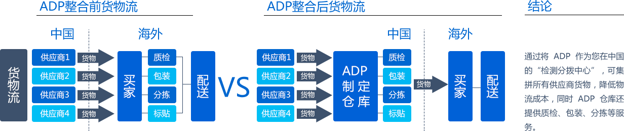 为在中国具有多个供应商的外商提供集拼、商务、验货、融资等一站式综合服务。